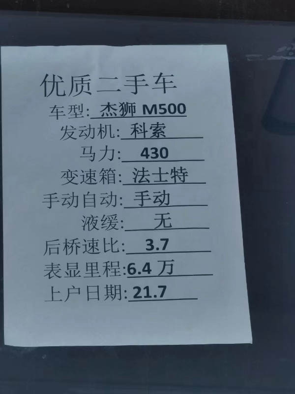 二手红岩杰狮牵引车,21年6月上户杰狮M500,科索430马力,法士特手动变速箱,不带液缓,后桥速比3.7,跑了几万里,可提档可分期