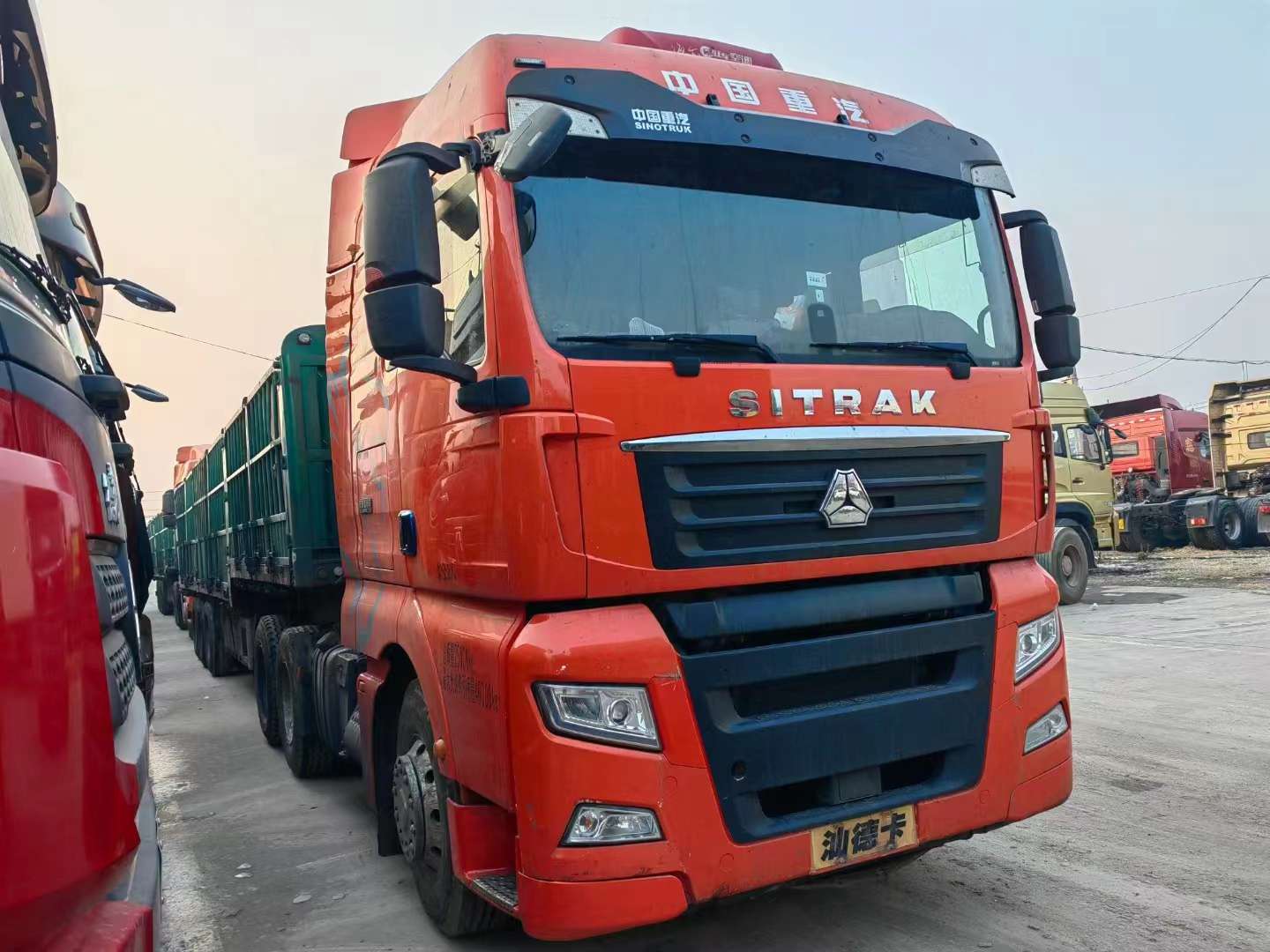 21年9月上户的汕德卡G7牵引车,德国曼500马力,重汽(手动挡)变速箱带液力缓速器,带同年限13米平板花篮,全国可提档分期。