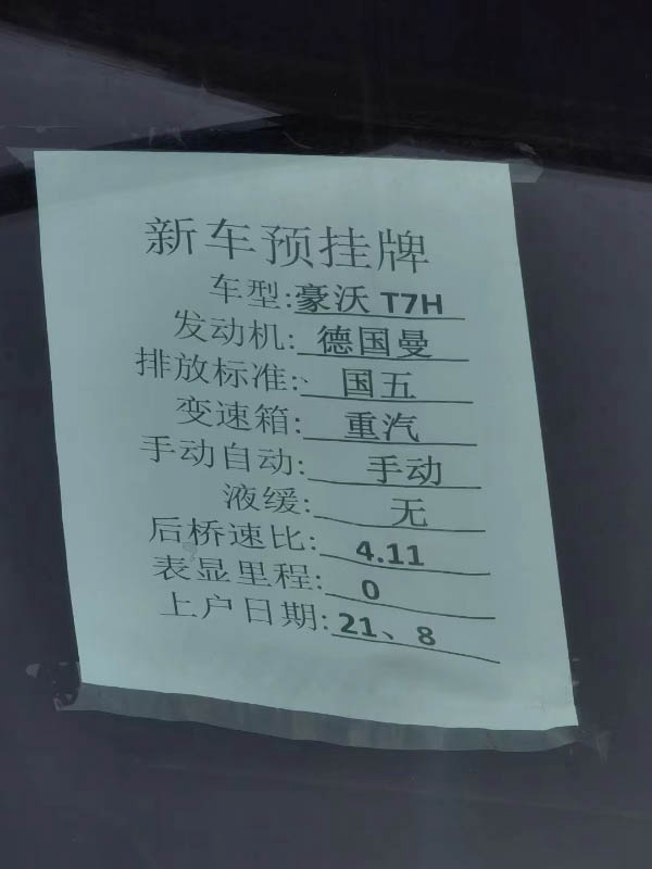 21年8月上户,国五,潍柴460马力,德国曼发动机,重汽变速箱,手动挡12速,前二后四板簧,速比4.11,可提档可分期